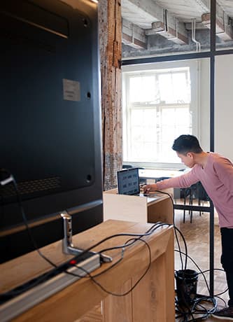 Distance separates many employees today as they work in different offices, from home, or on the road. AV services and technology bring them together. The challenge lies in creating a seamless audio-visual communication solution that delivers clarity, promotes collaboration, and makes meetings productive. Our video, audio, and web conferencing solutions and services ensure clear, reliable communication in a safe workplace environment.